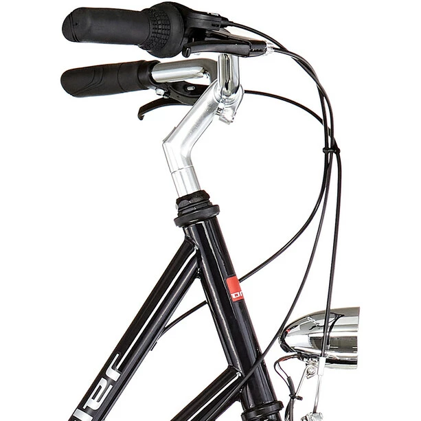 La Detroit ha equipaggiamento stradale completo, cerchi in alluminio stabili e un deragliatore Shimano a 6 velocità. La frenata avviene con un potente freno a V sulla ruota anteriore e posteriore.